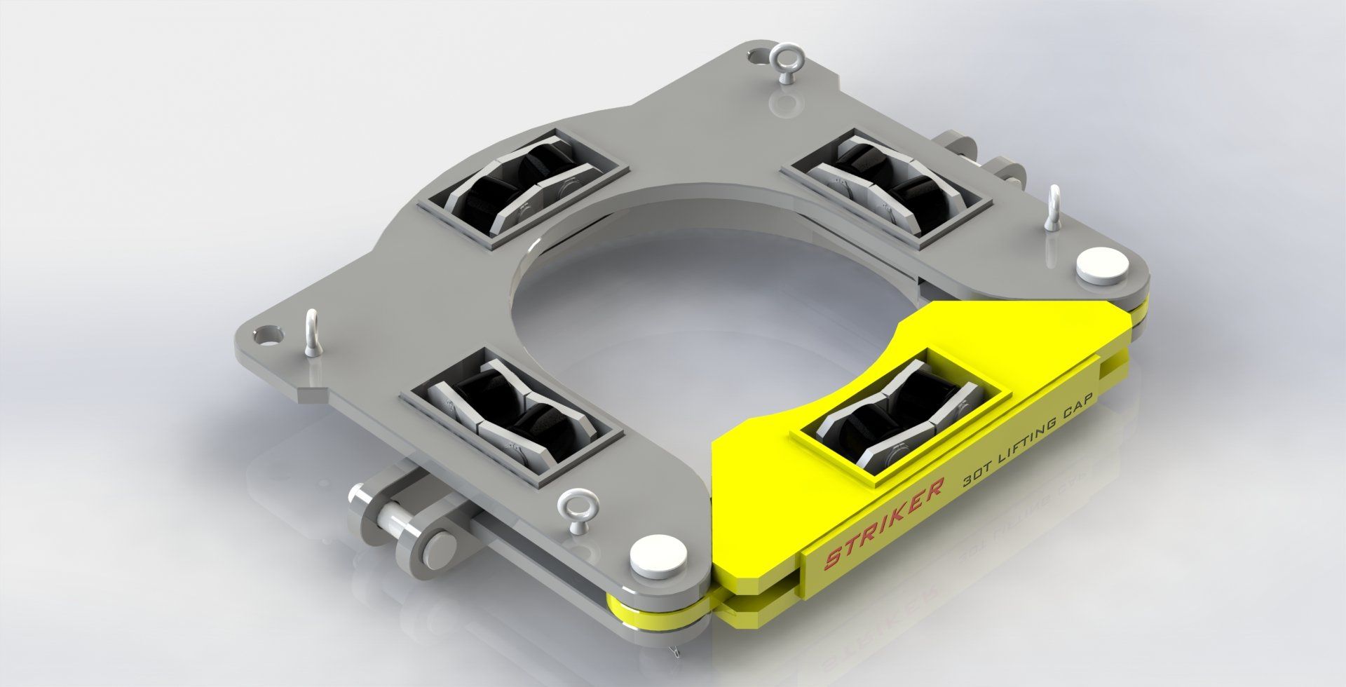 The Striker Annular BOP collar allows the BOP to rotate freely while being supported by the substructure’s trolley hoists. This simple addition allows the correction of misalignment during BOP installation, and can also be utilized to finesse the BOP through a narrow substructure opening on single load substructures with a smaller footprint.